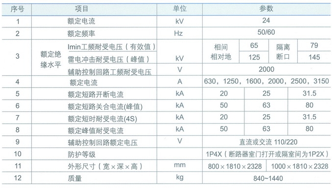 主要技術(shù)參數(shù)